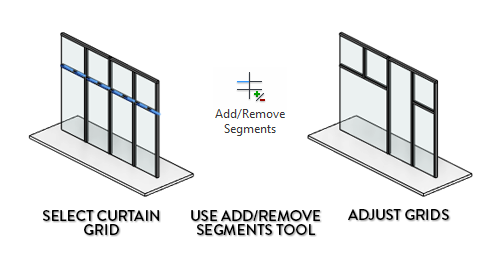 Join curtain wall panels to combine panels in a curtain wall remove curtain grid segments.